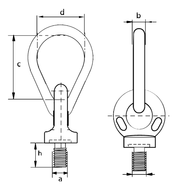 The reeve-able egg link moves freely within the eye of the bolt which enables it to pivot towards the line of pull when a sling is attached during lifting operations. The smaller end of the egg shaped link stays at the bottom, in the eye of the bolt, whilst the wider end at the top enables wider slings to be passed through or larger hooks and shackles to be connected. If using webbing type slings you should ensure that it is of a suitable width so that there is no excessive bunching, the sling should be flat.